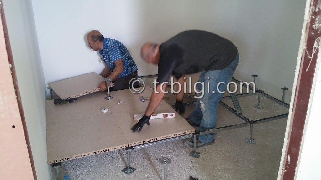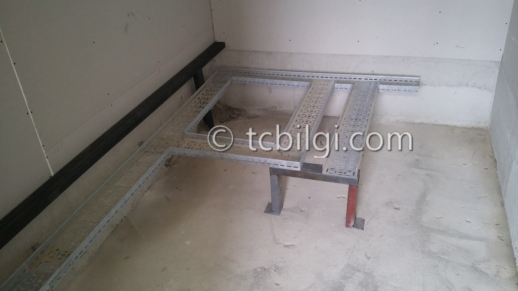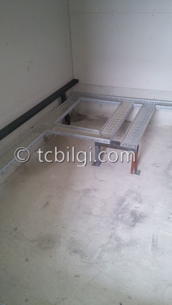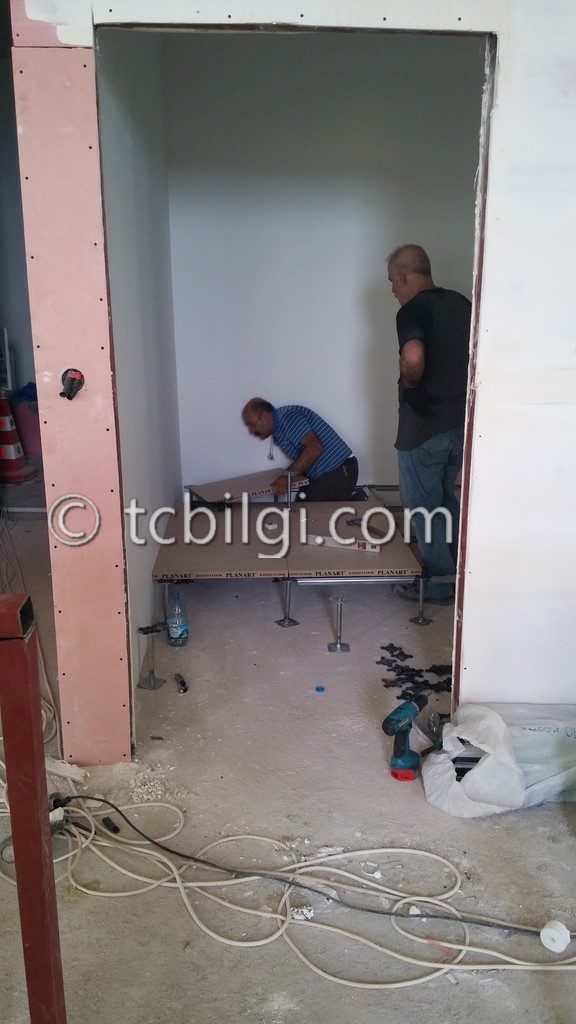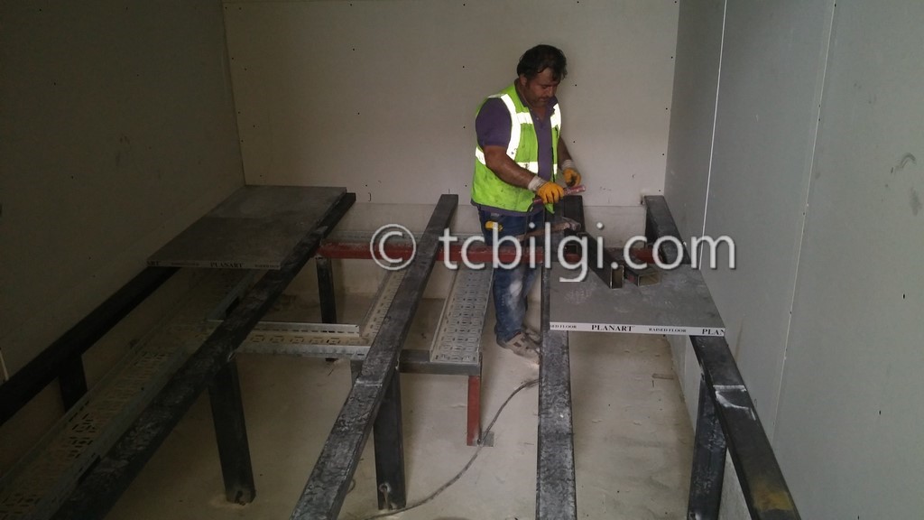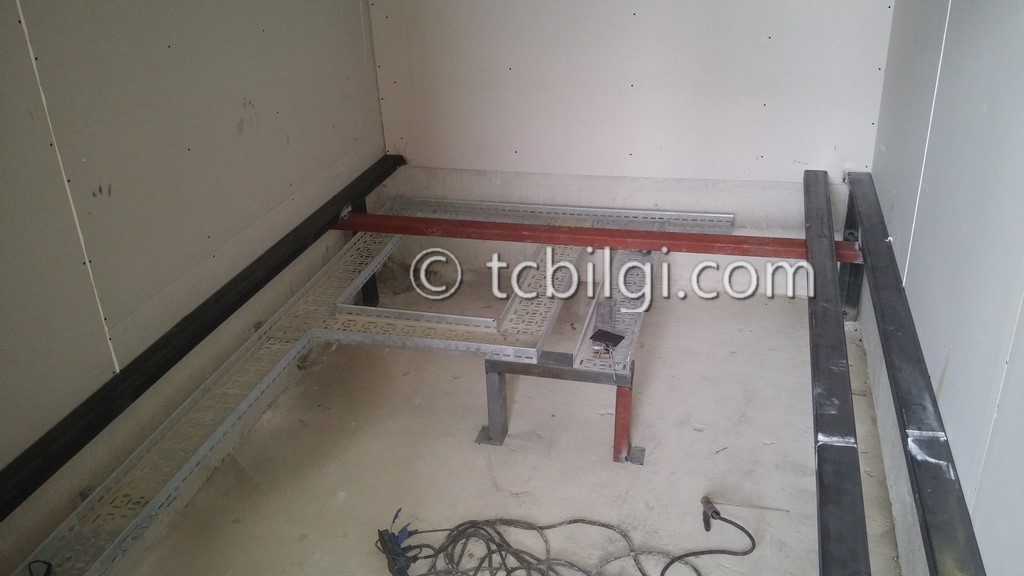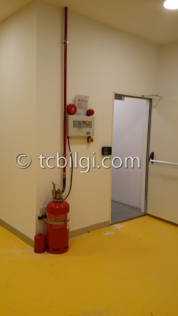Sistem odası için yanmaz alçıpandan duvar uygulaması, kablolama için tava uygulaması, yükseltilmiş döşeme uygulaması, yangın algılama ve gazlısöndürme uygulaması, yangına dayanıklı kapı uygulaması, sistem odasına giriş için parmak izi cihazına ait örnek bir çalışma.