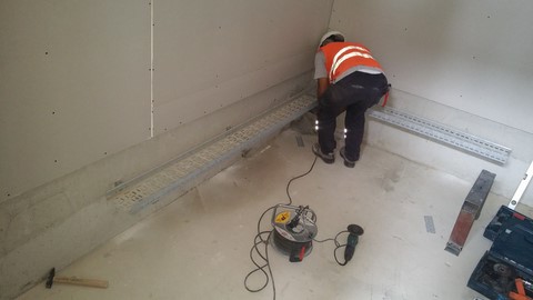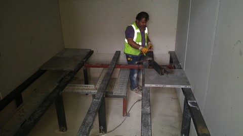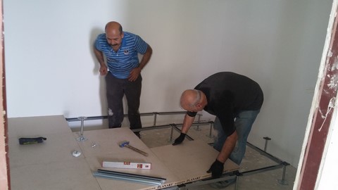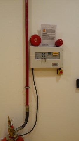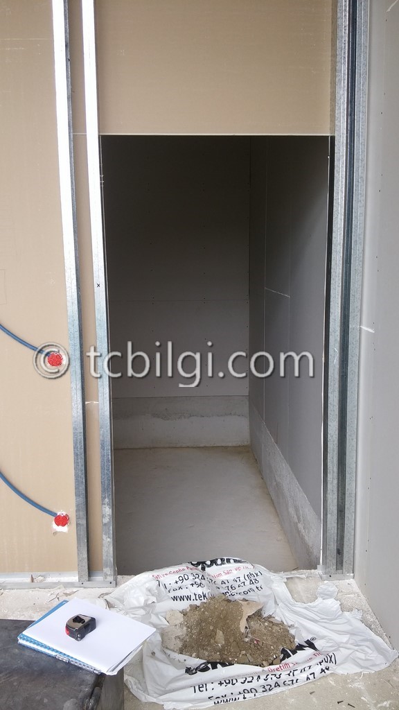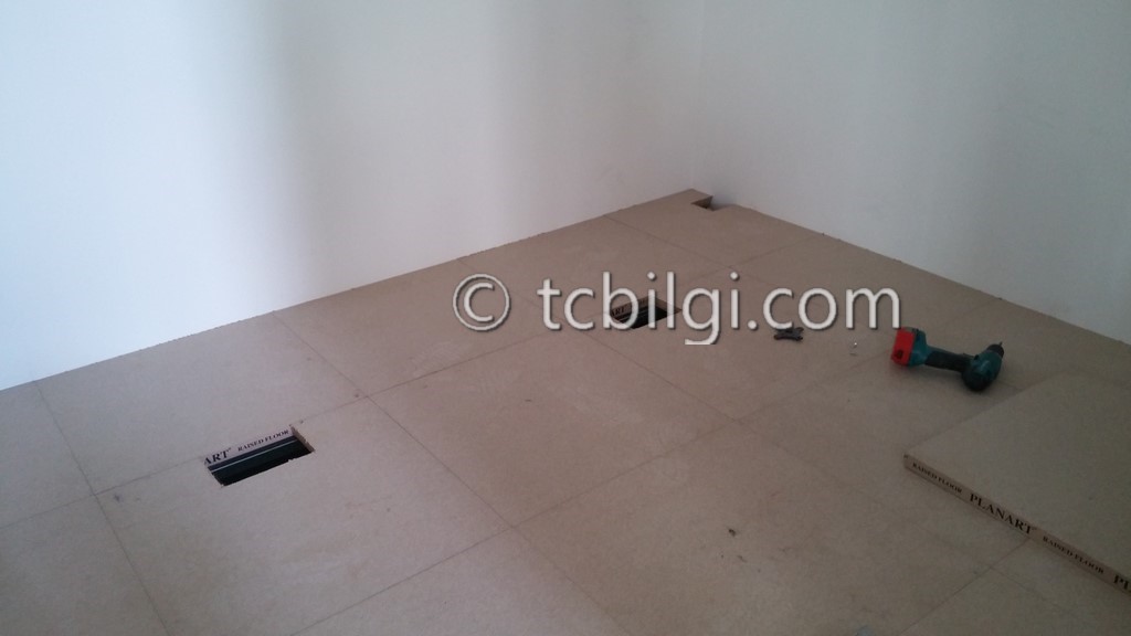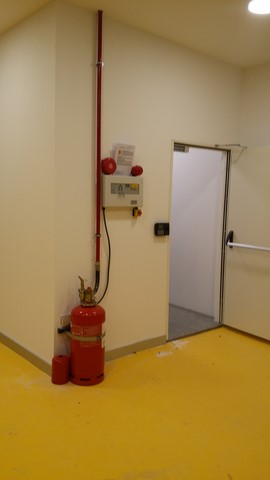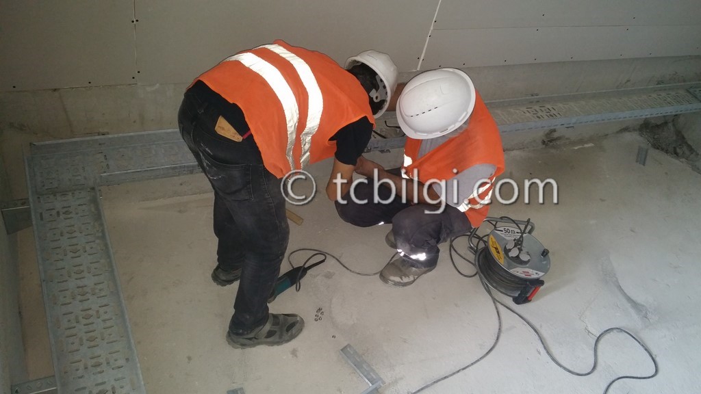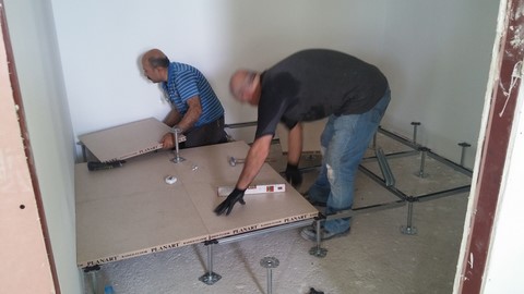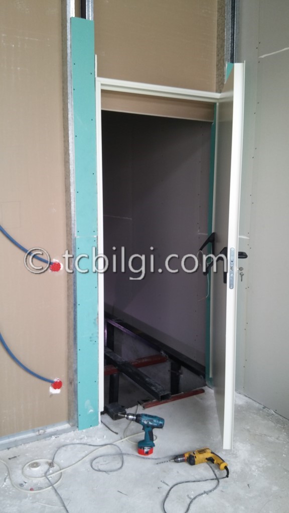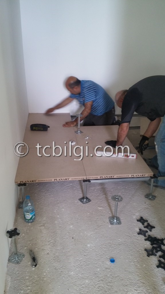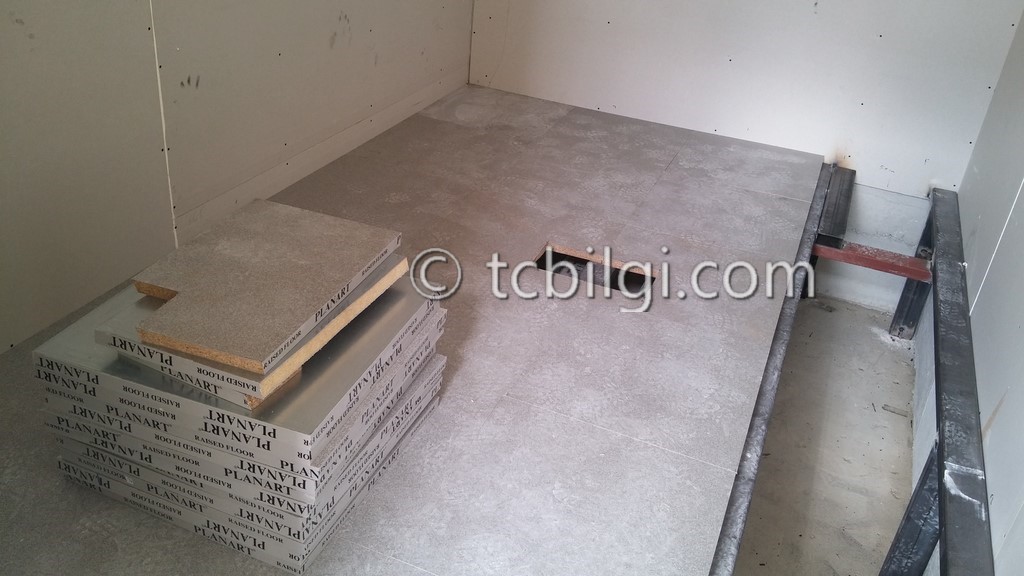 Sistem odası için yanmaz alçıpandan duvar uygulaması, kablolama için tava uygulaması, yükseltilmiş döşeme uygulaması, yangın algılama ve gazlısöndürme uygulaması, yangına dayanıklı kapı uygulaması, sistem odasına giriş için parmak izi cihazına ait örnek bir çalışma.